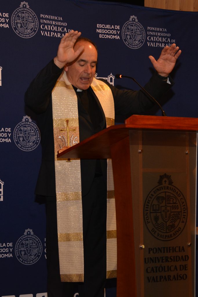 La actividad se desarrolló en un ambiente solemne y significativo, iniciando con la bendición a los graduados impartida por el Capellán de la Pastoral PUCV, Padre Daniel Forconesi, quien dedicó unas palabras de orientación y acompañamiento para esta nueva etapa profesional.