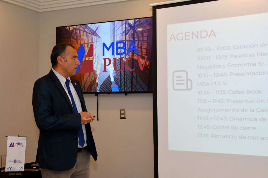 Asimismo, se presentaron las principales proyecciones y líneas de acción para el año académico 2026, las cuales buscan fortalecer el posicionamiento del MBA PUCV como un programa de excelencia en el ámbito de la formación de postgrado en negocios. Entre los ejes abordados destacaron la innovación curricular, la mejora continua de los procesos académicos y el fortalecimiento del vínculo con el entorno profesional y empresarial.